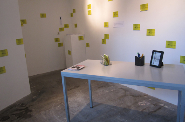 Neben der Organisation des Projekts gemeinsam mit Miriam Schröder (s. Kuratorische Tätigkeit), die ich als kommunikativen Prozess an der Grenze zum Künstlerischen verstehe, habe ich auch praktisch im Haus der Offenen Tür gearbeitet: Fragestellung aller meiner Interventionen waren die Möglichkeiten, die ein Ort noch hat, wenn er beseitigt werden soll, und jene, die er erst dadurch erhält. Als erste Geste zu Beginn des Projekts ist die Gleichsetzung von Innen- und Außenraum mit der Performance Haus der Offenen Fenster gleichzeitig als Aufmerksamkeits-Generator als auch als Prophezeiung zu verstehen. Diese Spannung wurde durch das Freilichtmuseum Marienstaße noch verstärkt: Auf dem Dach des Gebäudes, inmitten des öffentlichen Raums der Innenstadt, wurden Skulpturen ausgestellt, die aus Sicherheitsgründen niemand betrachten konnte und die gemeinsam mit dem Gebäude dem Abrissbagger zum Opfer fielen. Übrig geblieben sind nur Erinnerungen und einige Spuren, die ich in den Dia-Reihen Im Moment ist es August und Window-Color dokumentiert habe. Alle Projekte sind auf dem Blog und in der Zeitung der Perspektive: Abriss. nachzulesen. [Blog] [Zeitung]